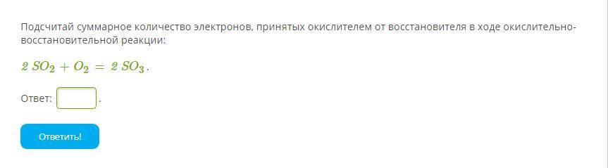 Подсчитай суммарное количество электронов, принятых окислителем от восстановителя в ходе окислительно-восстановительной реакции: