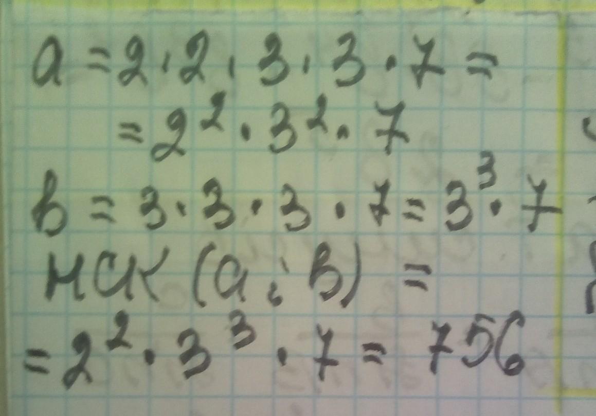 НОК(a;b)= (2*2*3*3*7)*3=756;