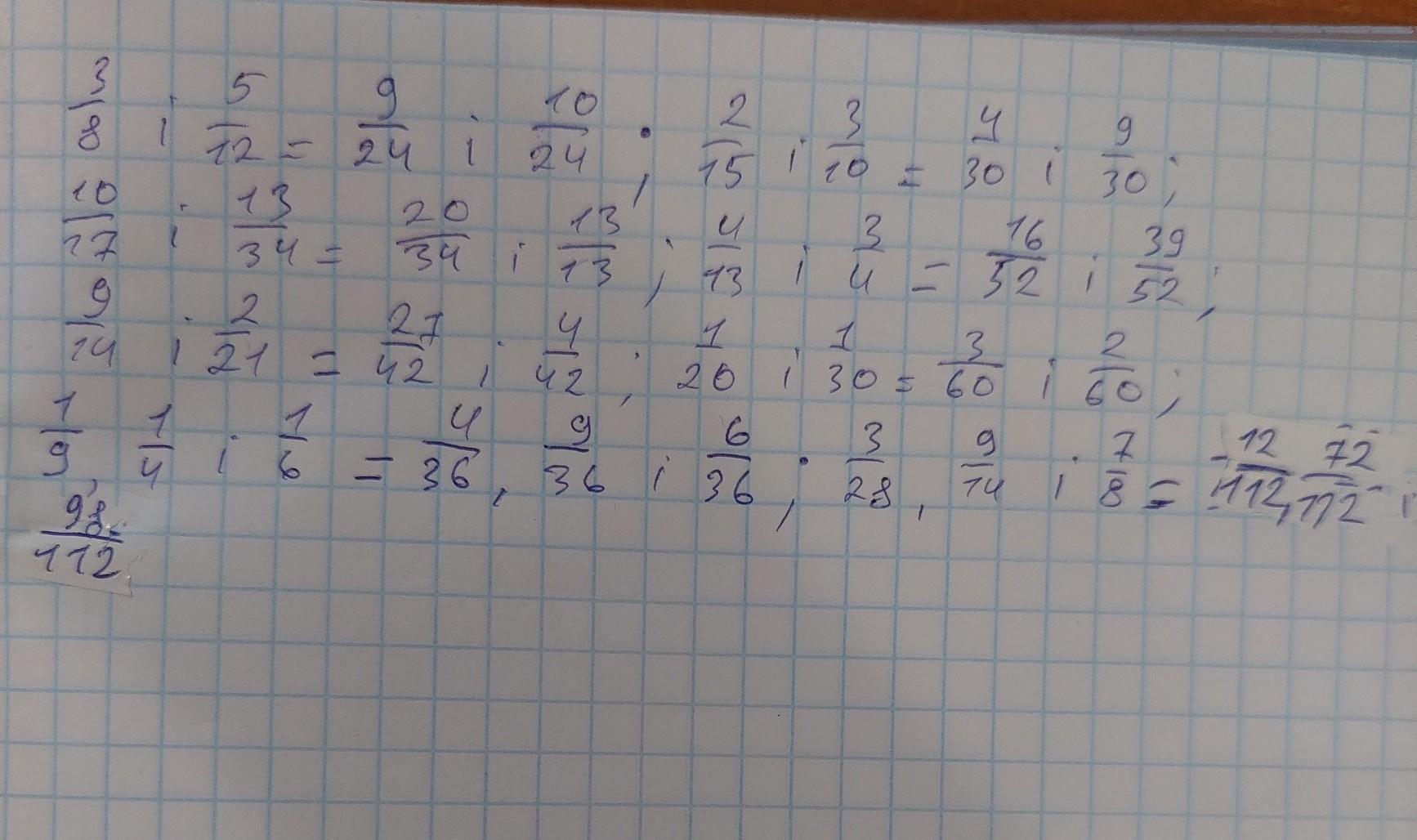 2/15 і 3/10; 10/17 і 13/34; 4/13 і 3/4 ; 9/14 і 2/21 ; 1/20 і 1/30 ; 1/9,1/4 і 1/6;