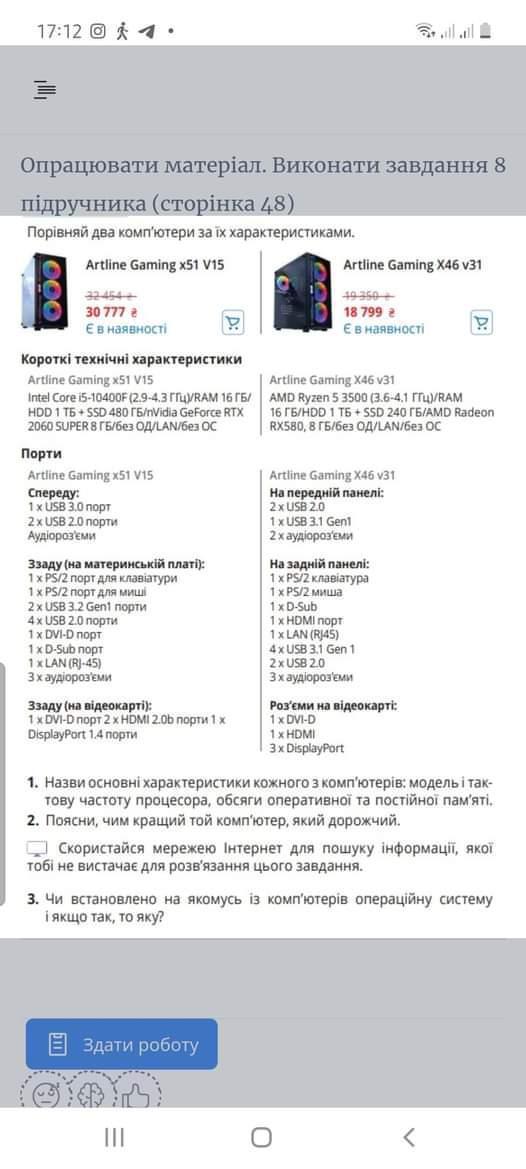 ни на одном из этих ПК не установлена ОС с завода. объем ОЗУ у компьютеров одинаковый - 16 ГБ DDR4, так же одинаковый объем HDD - 1ТБ, а вот объем твердотельного накопителя разный - у компьютера за 18799грн он составляет 240ГБ, а в компьютере за 30777грн уже 480ГБ. то есть, компьютер за 30777грн превосходит конкурента за 18799грн по параметрам: более современным видеоадаптером, большим объемом твердотельного накопителя. но вот процессорной производительности они примерно идентичны, несмотря на большое количество потоков у intel i5 10400f.