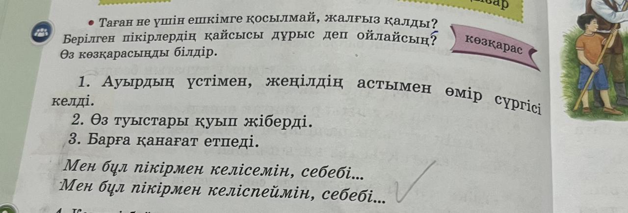 1) Ауырдың үстімен,жеңілдің астымен өмір сүргісі келді.