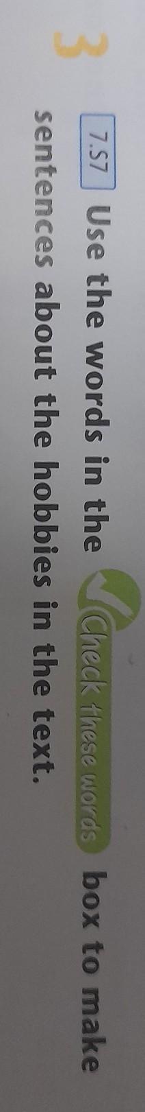 3 7.57 Use the words in the sentences about the hobbies Check these Check in the text. words these words box to make