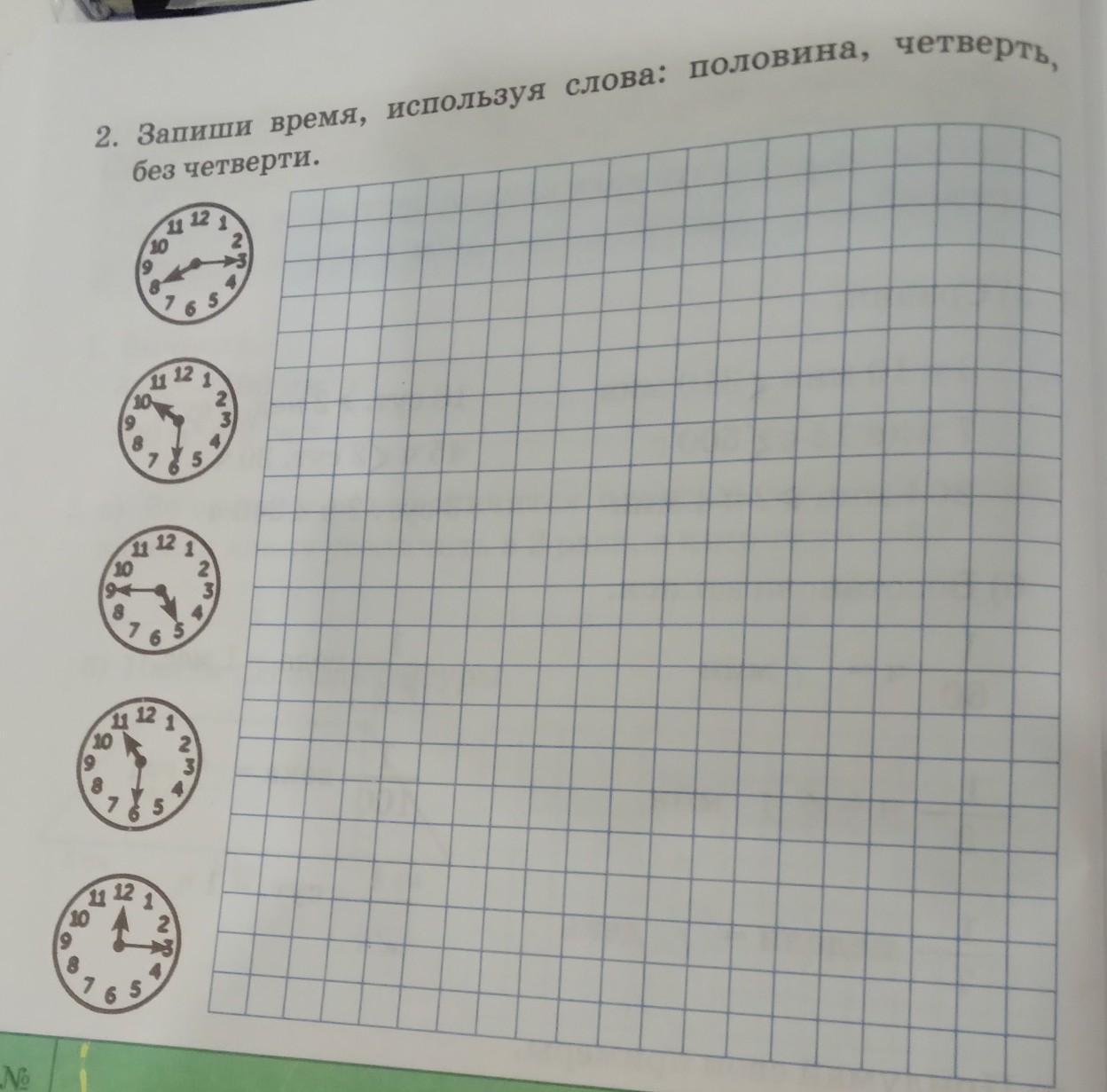 2. Запиши время, используя слова: половина, четверть, без четверти СРОООЧНО дам 30 баллов 4 класс