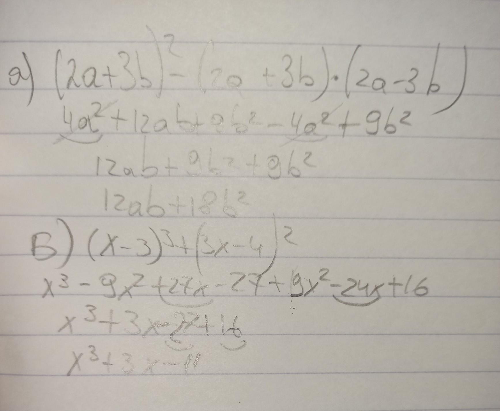 а) (2a+3b)²-(2a+3b)(2a-3b)