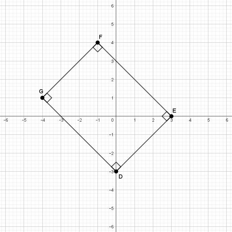 доведіть що чотирикутник з вершинами в точках d (0,-3) e (3,0) f (-1,4) і g (-4,1) є прямокутником