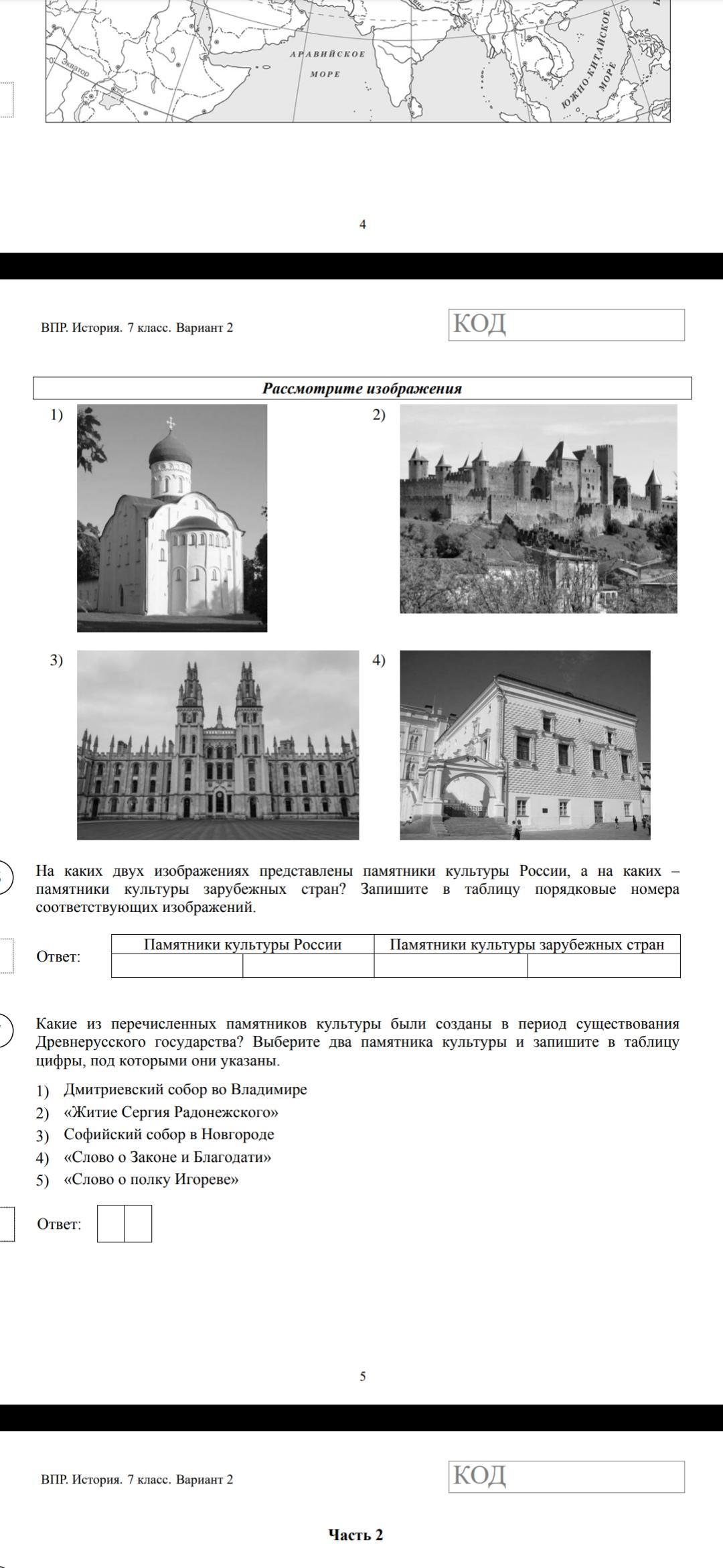 памятники культуры зарубежных стран? Запишите в таблицу порядковые номера