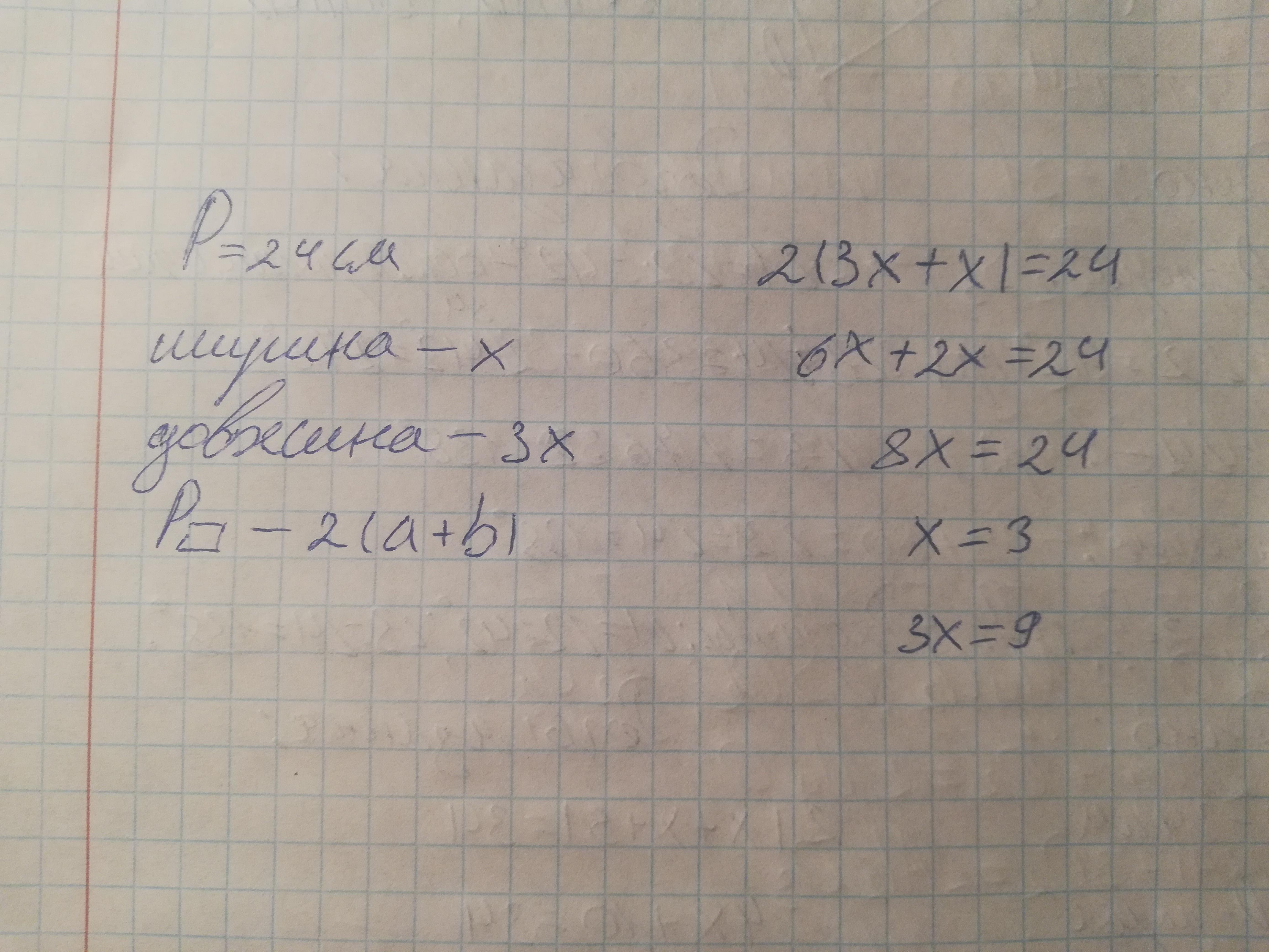 периметр прямокутника дорівнює 24 см. Його ширина в 3 рази менша за довжину. Знайдыть довжину і ширину прямокутника