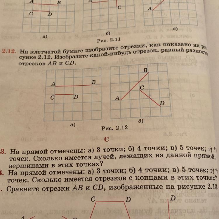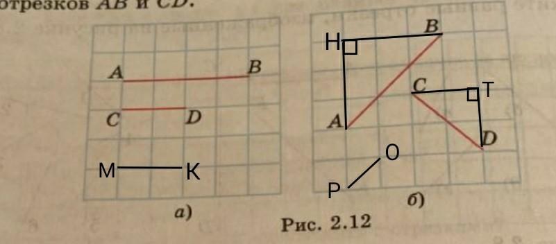2.12. На клетчатой бумаге изобразите отрезки, как показано на ри.
