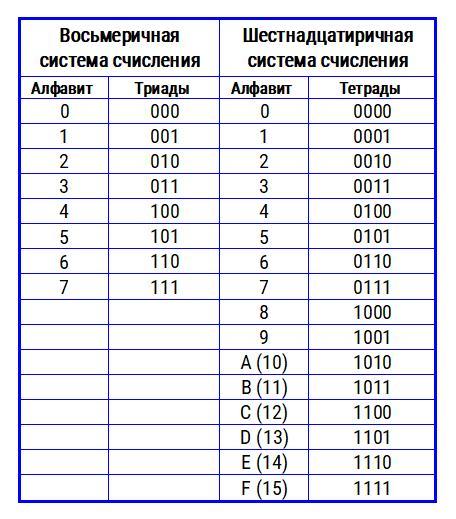 Для перевода из двоичной системы счисления в шестнадцатеричную систему счисления разобьём число на тетрады, начиная справа, если для последней левой тетрады не хватает цифр, дополним её слева требующимся количеством нулей, и каждую заменим цифрой: