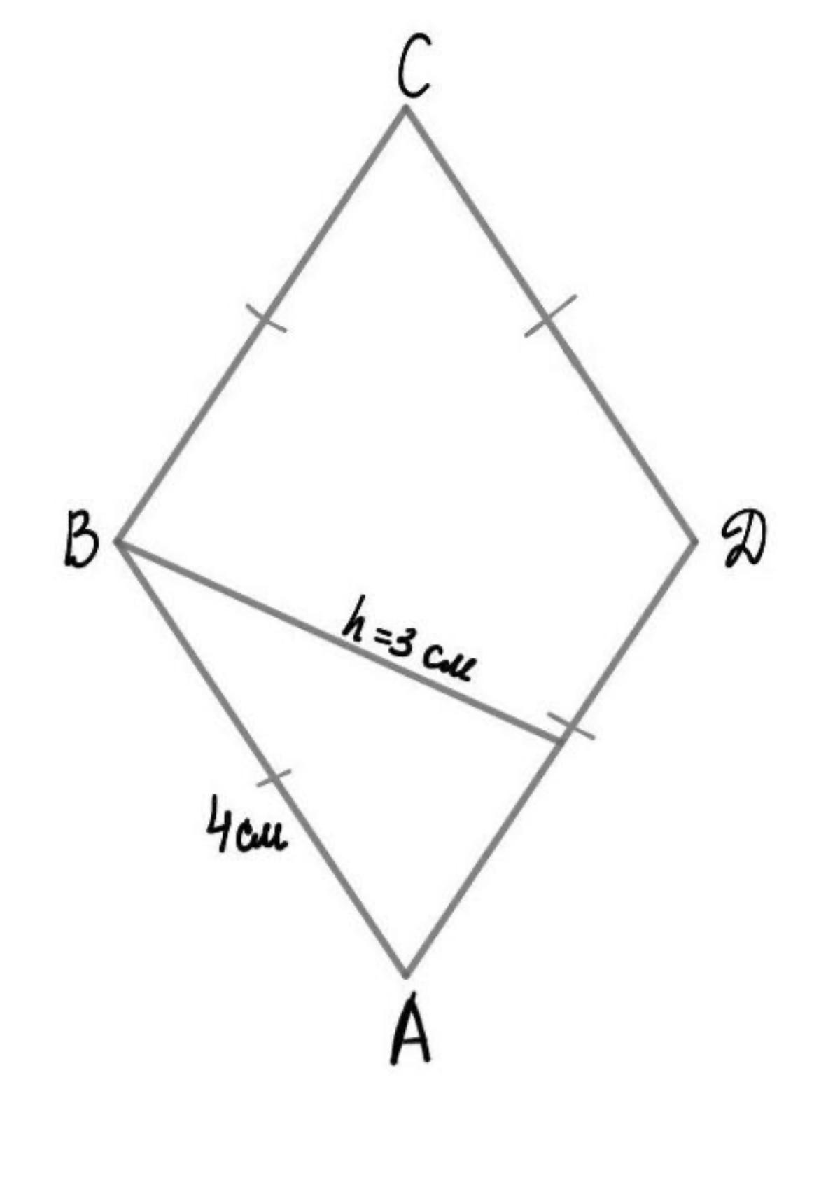 знайти площу ромба ABCD у якого AB дорівнює 4 см висота проведена до сторони BC = 3 см