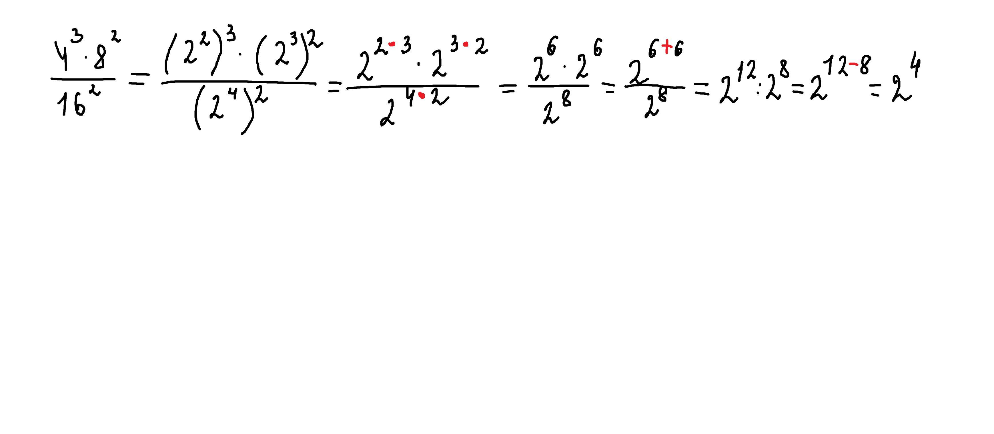 при возведении степени в степень показатели перемножаются,при умножении-складываются,при делении-вычитаются
