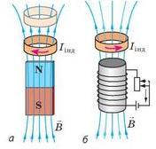 2) Струм напрямлений по передній стінці: а) униз; б) угору; в) угору; Напрямок індукції магнітного поля: а) зліва направо; б) справа наліво; в) справа наліво; 3) Якщо магніт підносити до алюмінієвого кільця з розрізом, то кільце залишиться нерухомим, індукційний струм у кільці з розрізом не виникає.