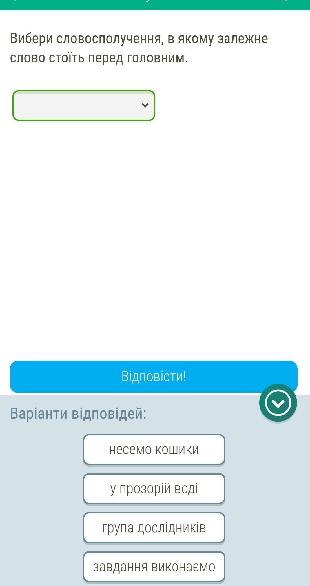Вибери словосполучення, в якому залежне слово стоїть перед головним.