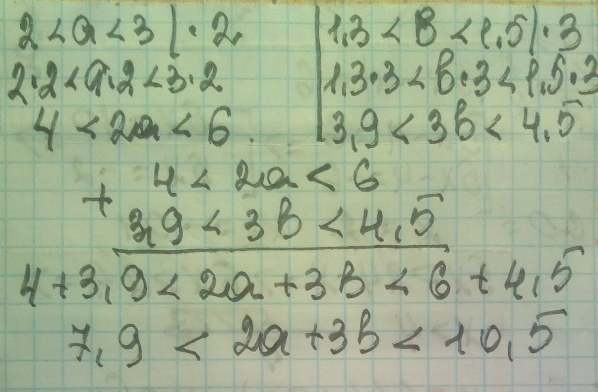 відомо що 2<а<3,1,3<b<1,5.Оцініть значення виразу 2а+3b.з розв'язанням​