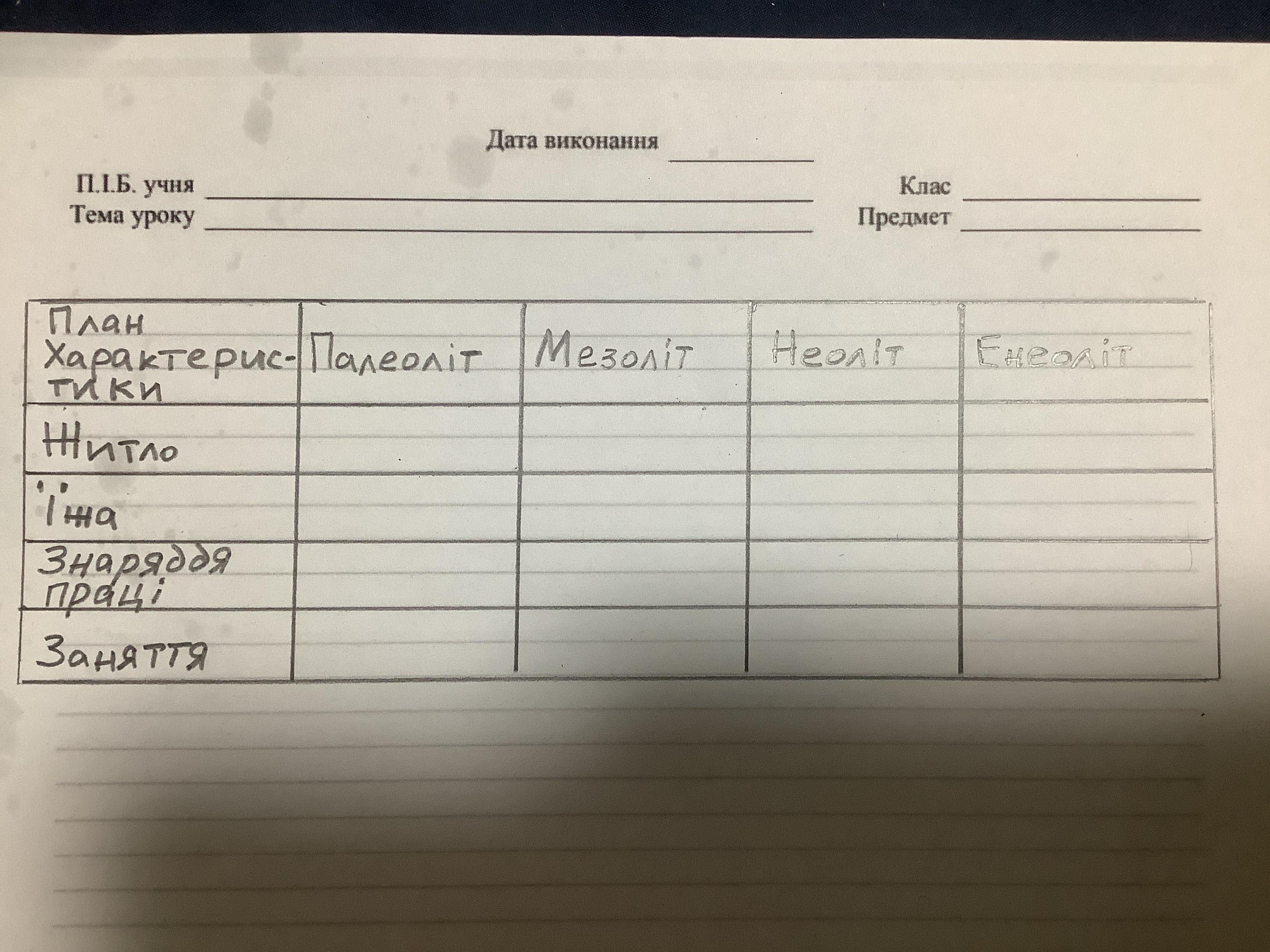 То я пронумерував щоб розуміти було як записати в таблиці 1. Житло 2. Їжа3. Знаряддя праці 4. заняття