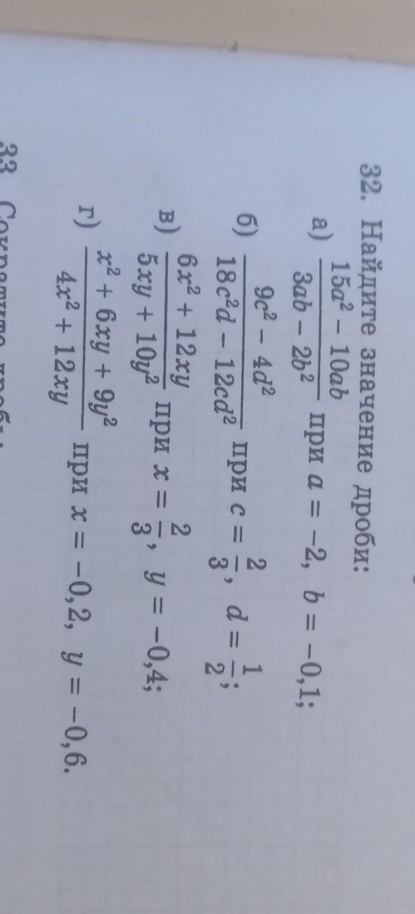 в) 6x² + 12xy /5xy + 10y² при x=2/3, y =-0,4