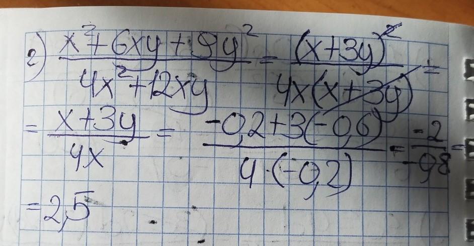 г) x² + 6xy + 9y² /4х² + 12 ху при х = -0,2, y = -0,6.