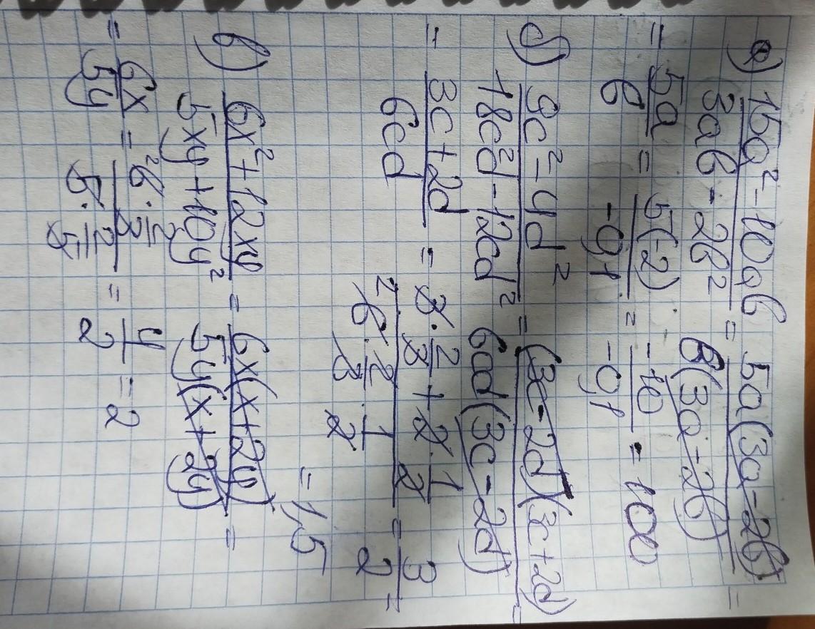 а) 15a² - 10ab /3ab - 2b² при а = -2, b= -0,1;