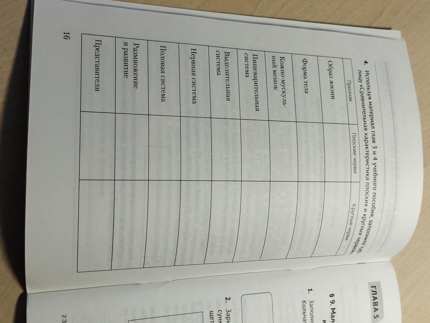 4. Используя материал глав 3 и 4 учебного пособия, заполните таб- характеристика плоских и круглых червей». лицу «Сравнительная