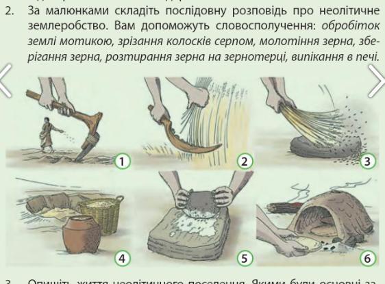 Спочатку люди обробляли землю, потім збирали врожай. Наприклад, пшеницю вони оббивали, щоб витрусити зернятка, після цього вони їх збирали. Замішували тісто, рамбували, робили форму, та запікали.