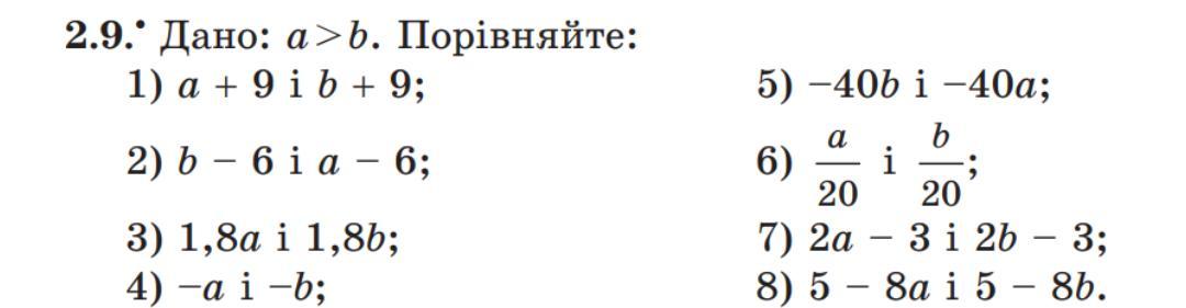1) a+9>b+9, Якщо до обох частин нерівності додати одне й те саме число - знак нерівності не зміниться.
