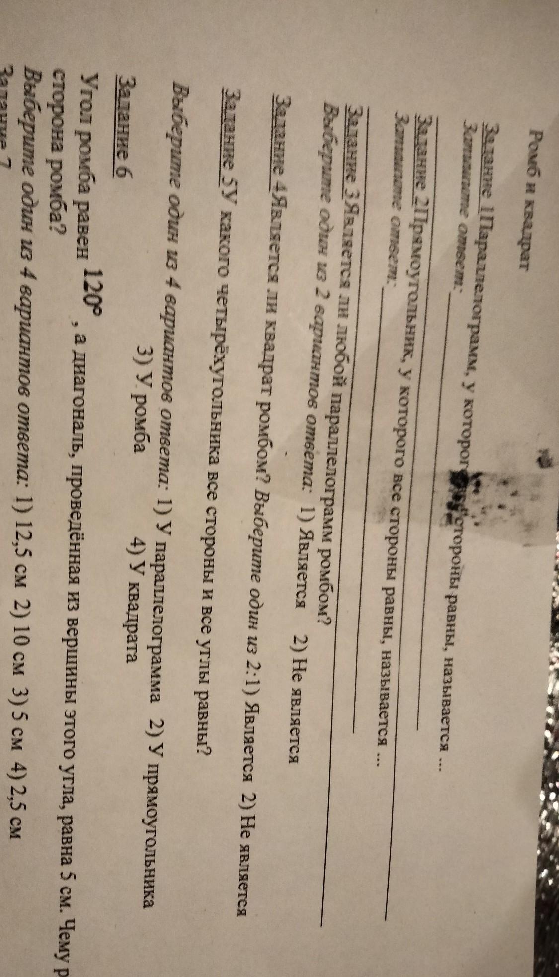 1. ромб 2. квадрат 3. не является 4. не является 5. у квадрата 6. 5см