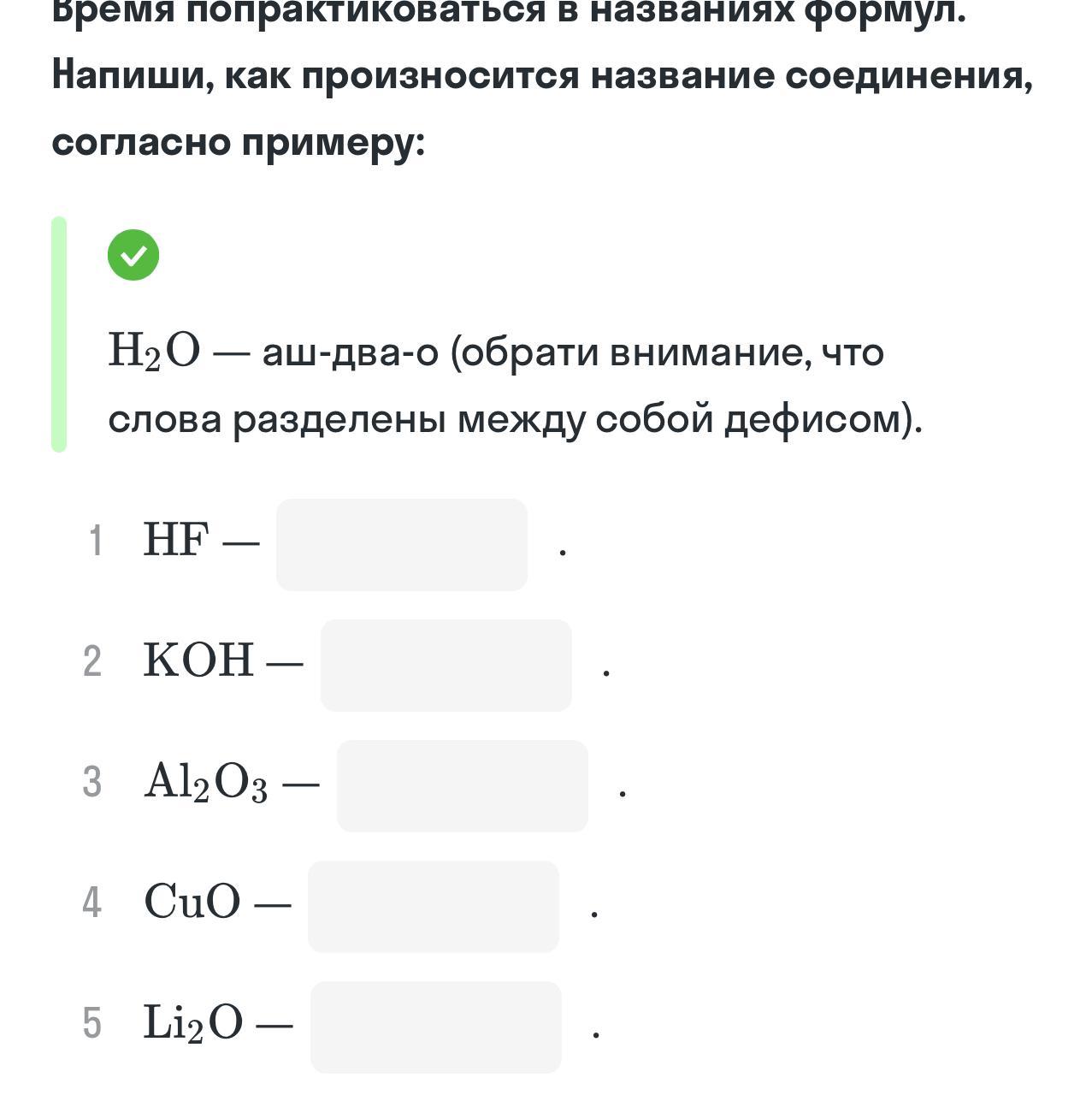 Напиши, как произносится название соединения,