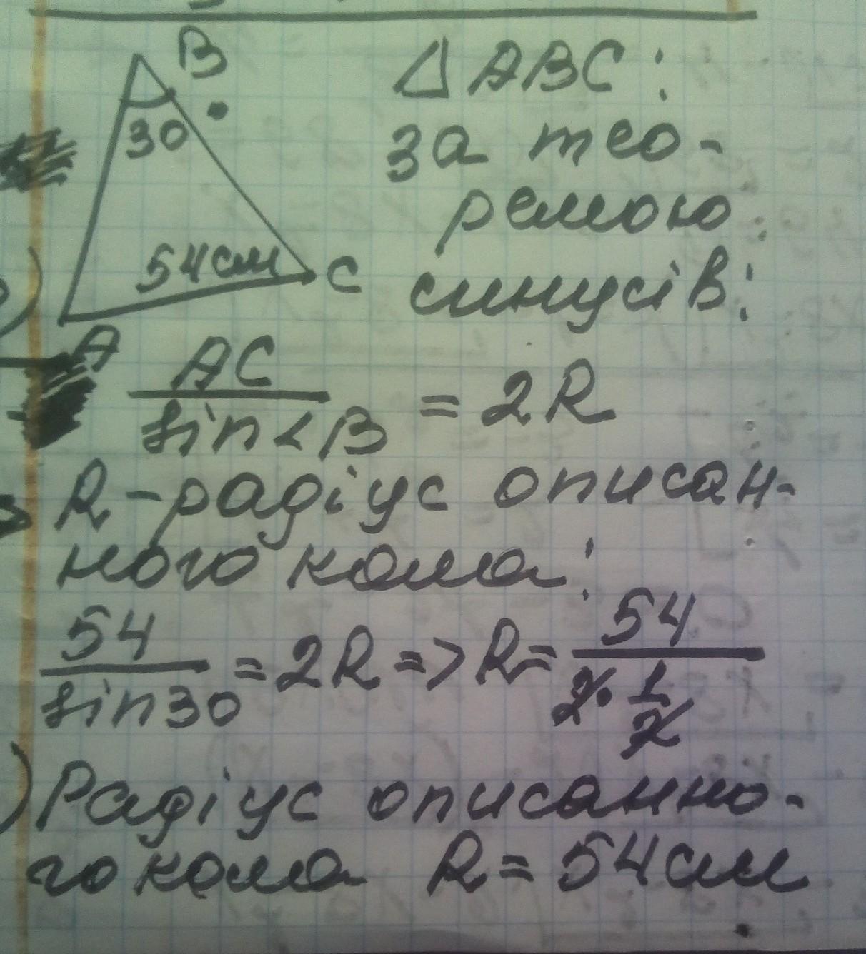 Обчисли радіус кола, описаного навколо трикутника, якщо один із його кутів дорівнює 30°