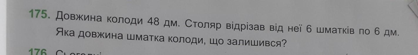 1) 6 * 6 = 36 (дм) - отрезал столяр
