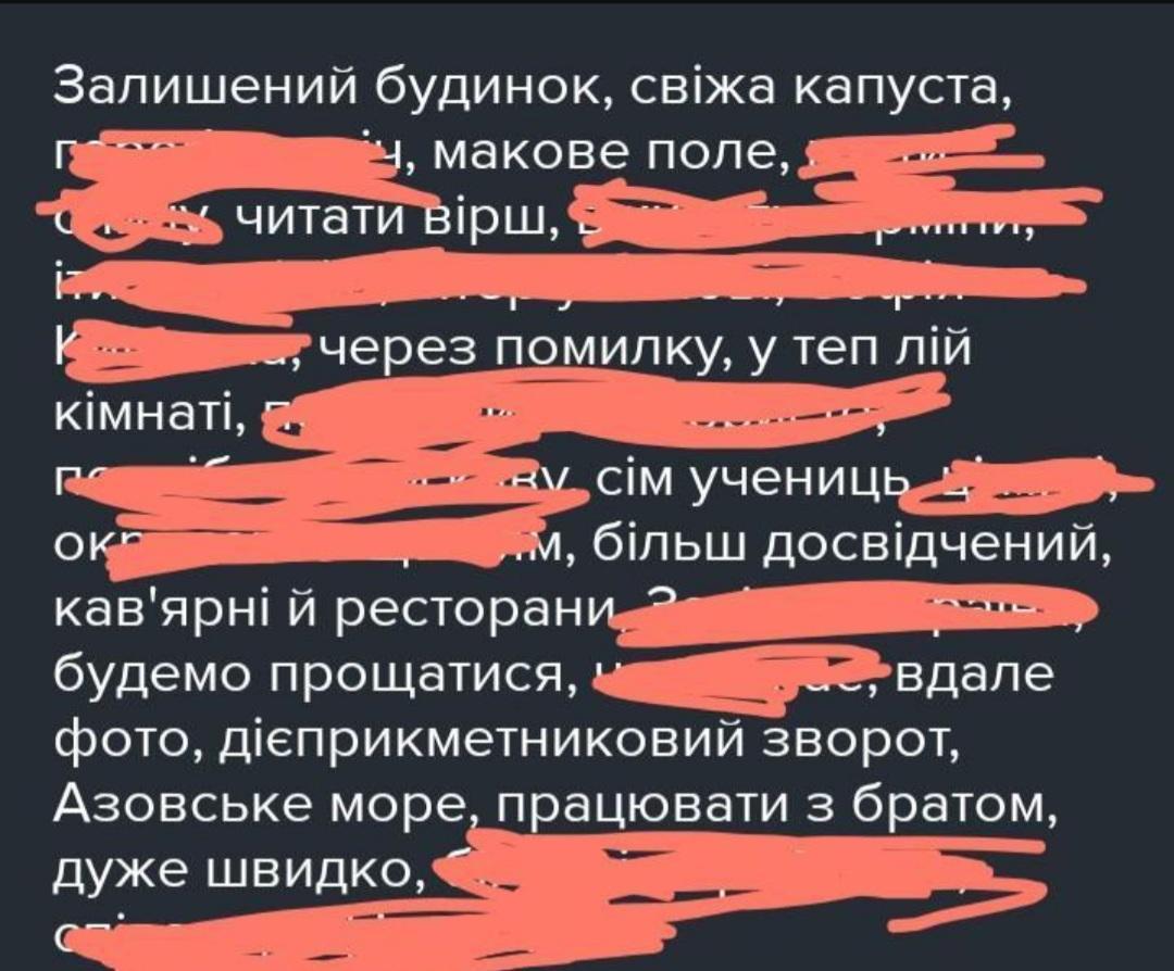 1. Випишіть лише синтаксичні словосполучення та побудуйте до них схеми. Залишений будинок, свіжа капуста, горобина нiч, макове поле, гнути спину, чита вірш, вживати терміни, іти з матір'ю, вітер у голові, Софія Київська, через помилку, у лій кімнаті, поводитися гонористо, подрібнювати каву, сім учениць, ці миті, окриленн щастям, більш досвідчений, кав'ярні й ресторани, Західна Україна, будемо прощатис час минас, вдале фото, дієприкметниковий зворот, Азовське море, працювати з брато дуже швидко, бігти підстрибуючи, співати дифірамби.