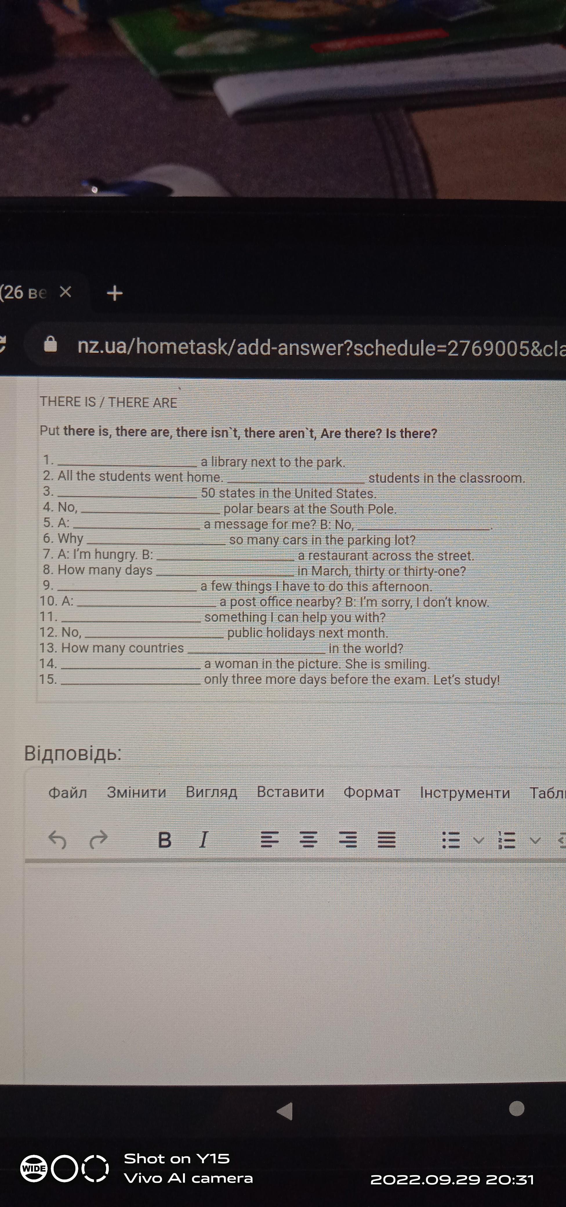Put there is, there are, there isn't, there aren't, Are there? Is there?