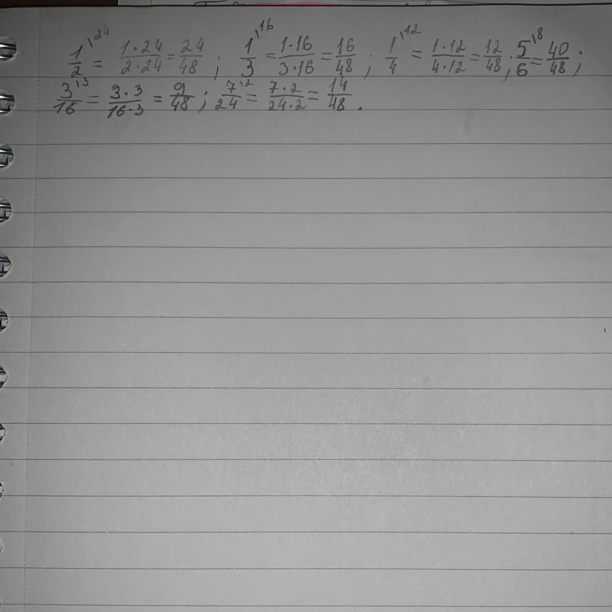 Тобі, треба підібрати число, щоб знаменник дробу при множенні на нього дорівнював 48. Потім перемножити весь дріб на це число
