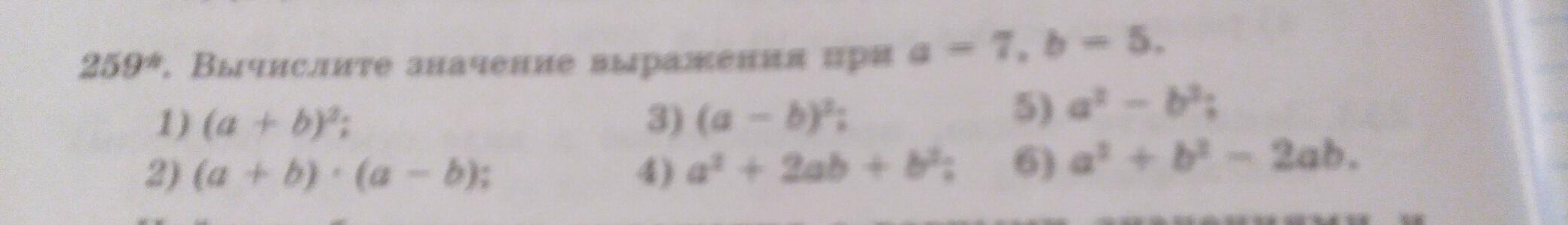 259.Вычислите значение выражения при a=7,b=5