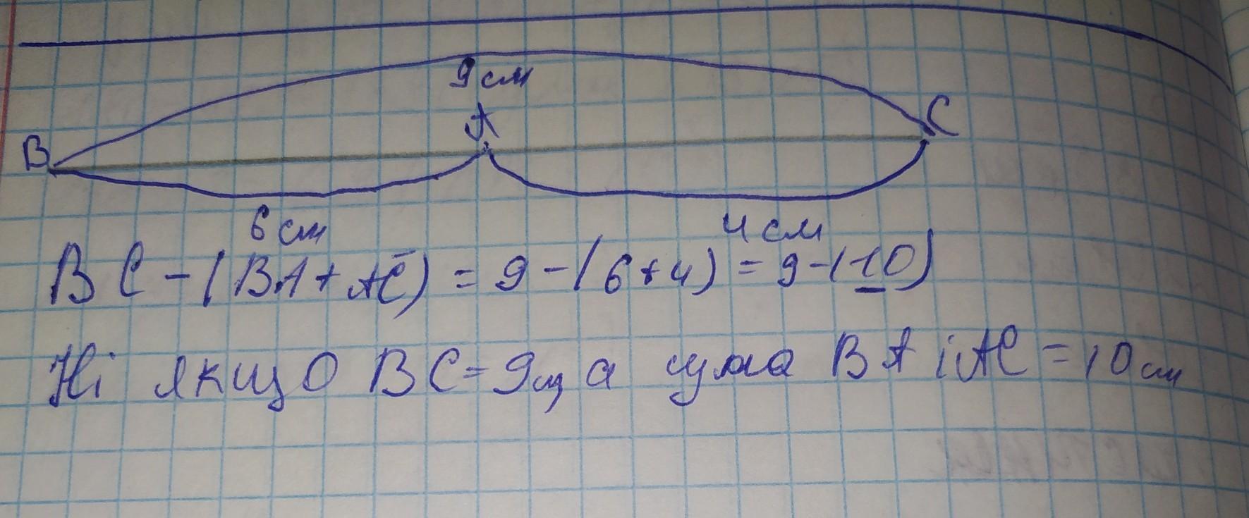 ПИТАННЯ: 4/16 Чи може точка А лежати між точками В і С, якщо AB = 6 см, ВС = 9 см, АС = 4 см? Введіть відповідь Введіть відповідь... ЗБЕРЕГТИ І ПЕРЕЙТИ ДАЛІ