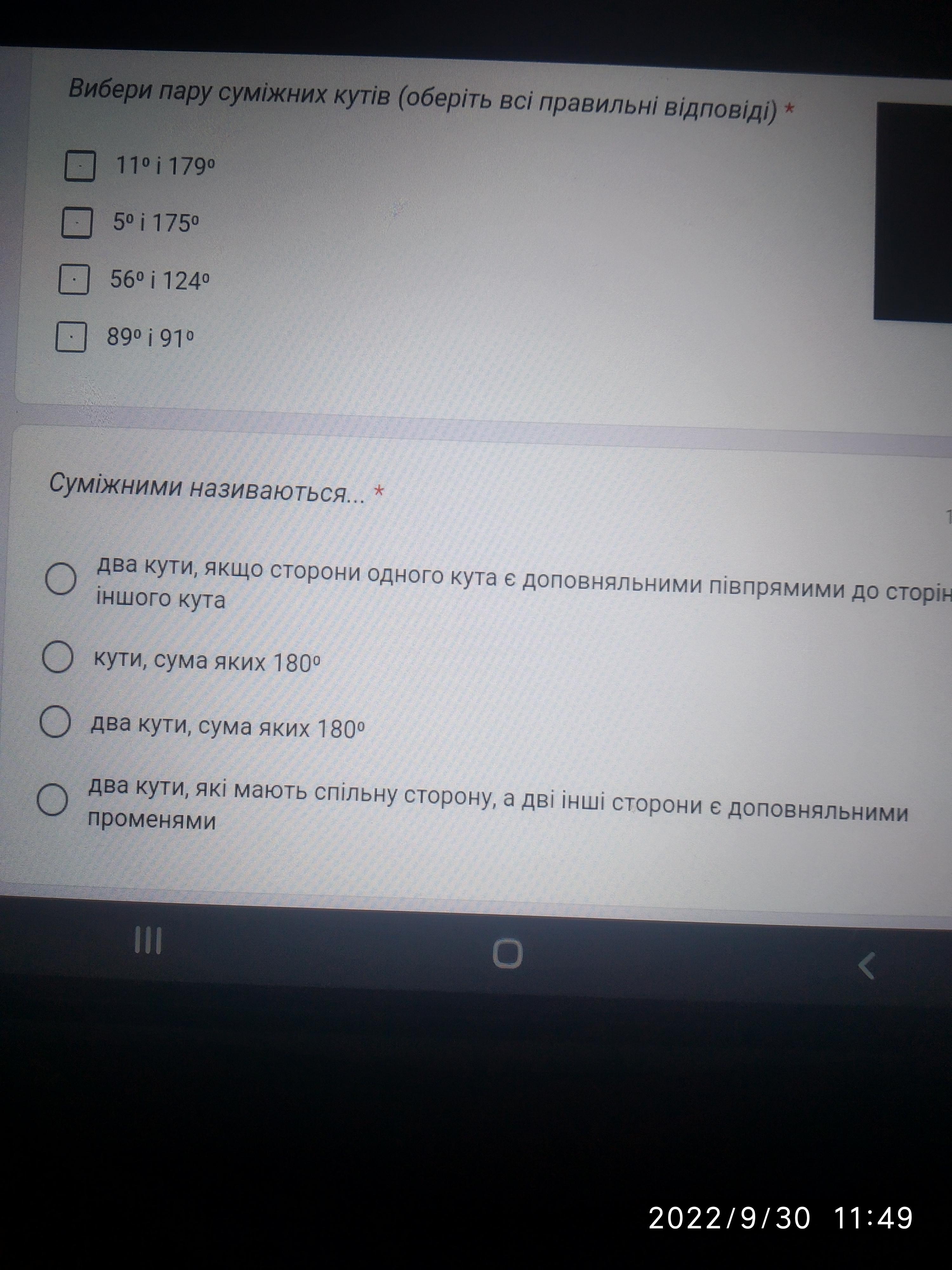 2) кути , сумма яких 180°