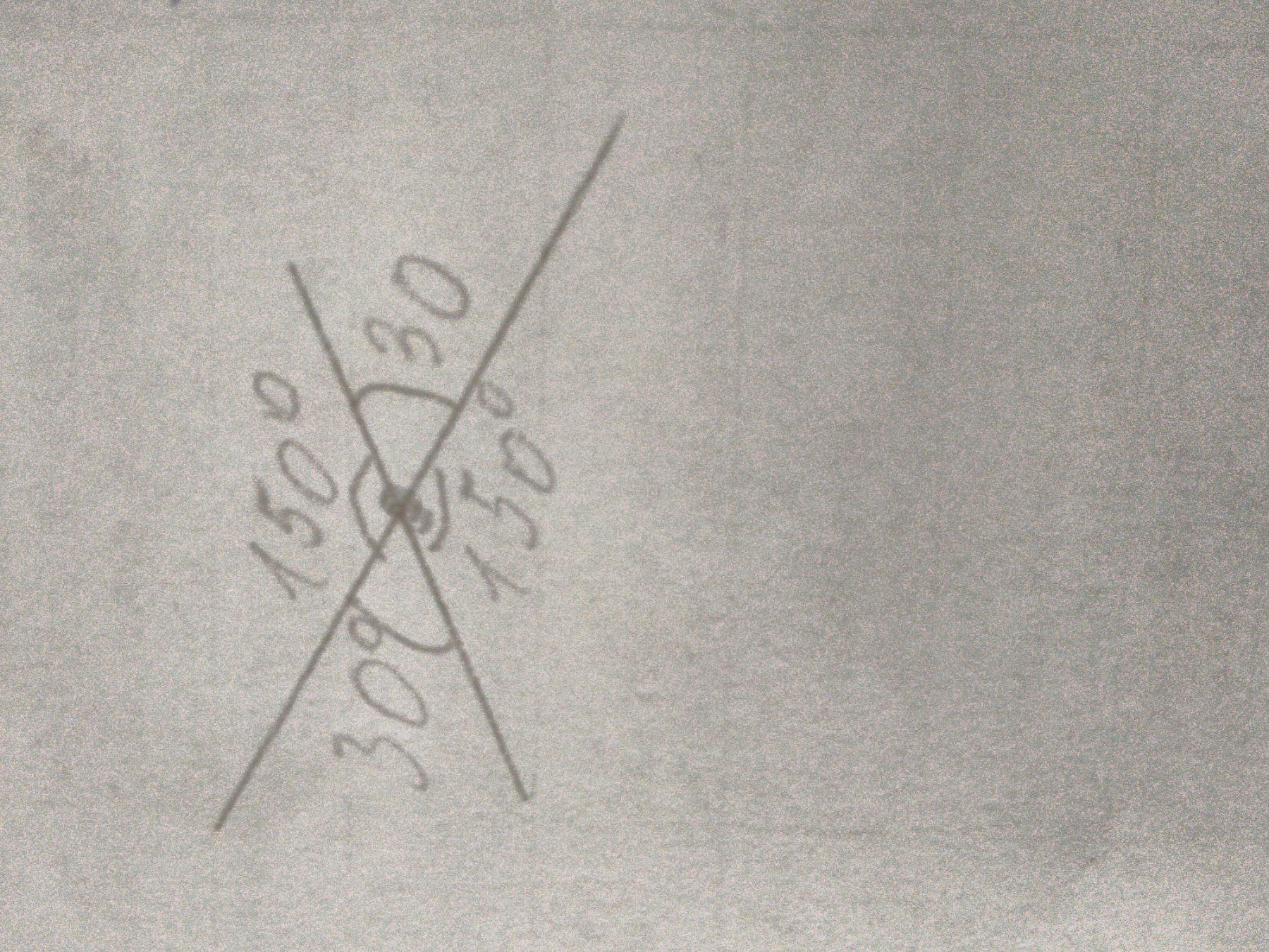 При перетині двох прямих утворюється дві пари вертикальних і чотири пари суміжних кутів: 30, 150, 30, 150.