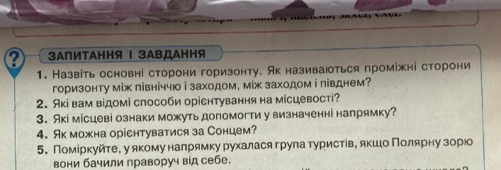1. Основні сторони горизонту - північ, південь, схід, захід.