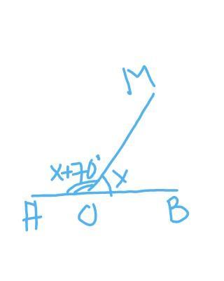 пусть ∠МОВ=х°, тогда ∠АОМ=(х+70)°