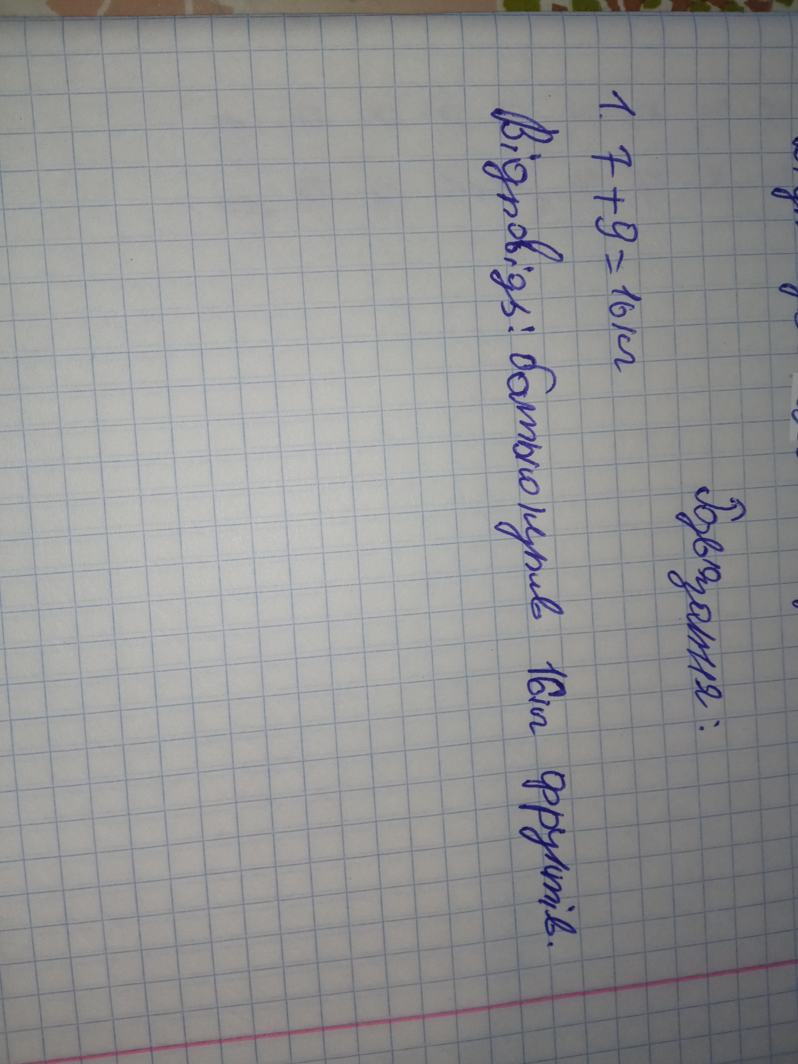 Розв'яти двома способами.З коротким записом задачі.Батько купив 7кг груш,а яблук на 9кг більше.Скільки кг фруктів купив тато?