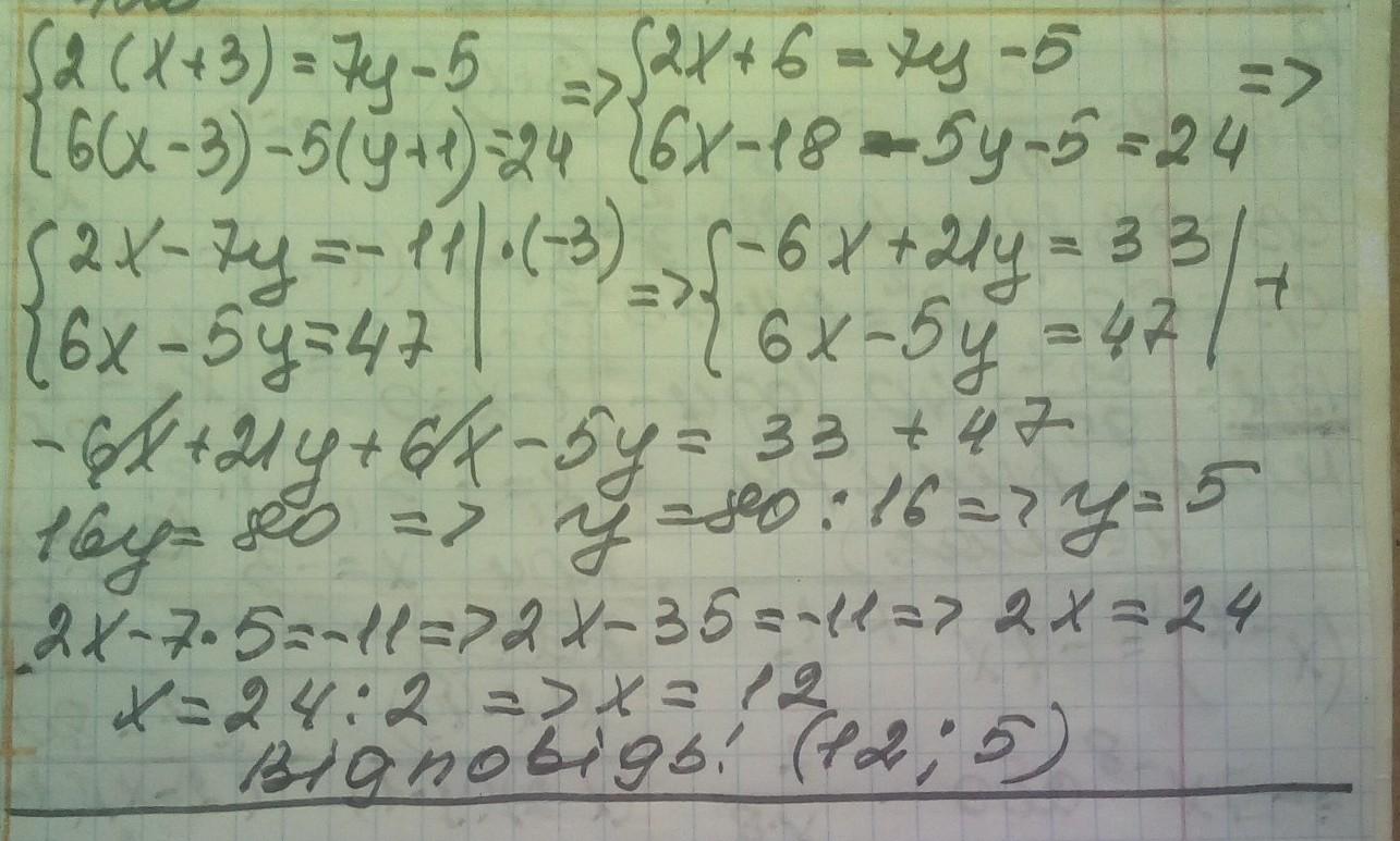 {2(x+3)=7y-5