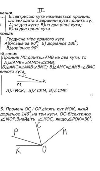 5) ∠РОМ=∠МОК-∠РОК=140-30=110°