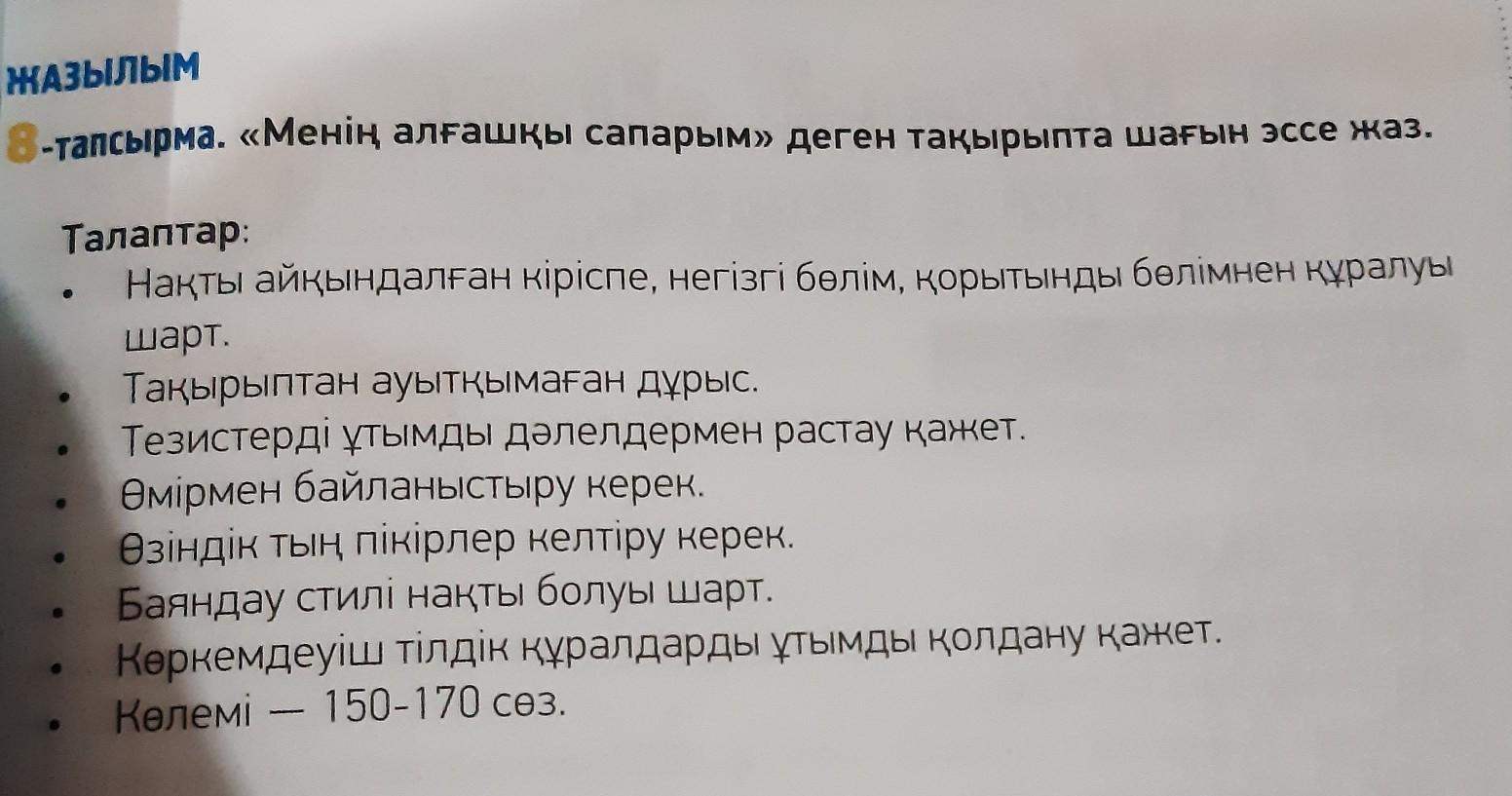 8-тапсырма. «Менің алғашқы сапарым» деген тақырыпта шағын эссе жаз.