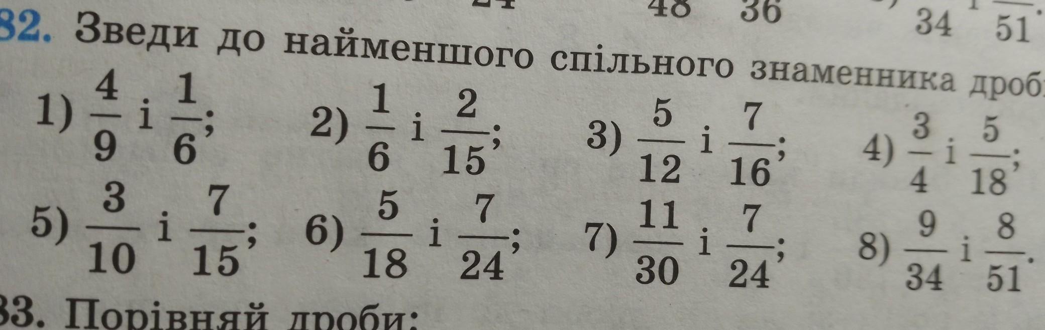 5)9/30 і 14/30 6) 20/72 і 21/72 7) 44/120 і 35/120 8) 27/102 і 16/102