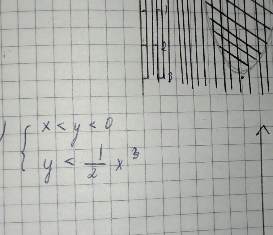 2 неравенство: - это часть плоскости , лежащая ниже кубической параболы y=0,5x³ . Граница области не входит в решение, так как знак неравенства строгий . Область закрашена синим цветом .
