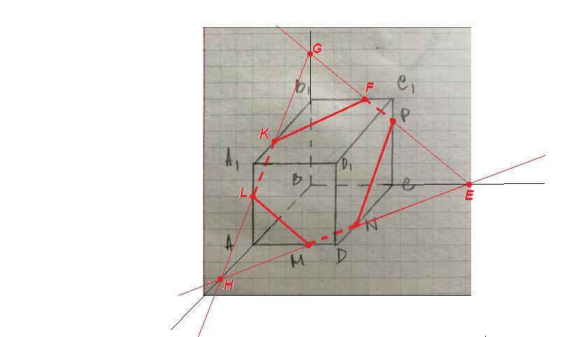 Проводим прямую GH, которая пересекает ребро А₁В₁ в точке К и ребро АА₁ в точке L.