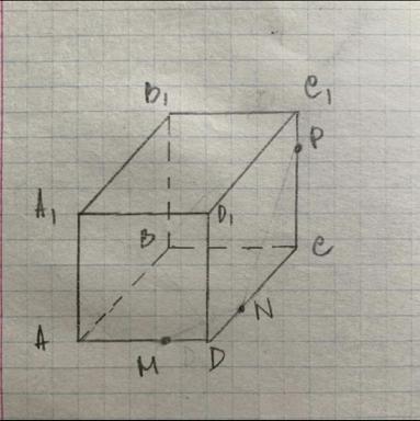 Дан куб ABCDA1B1C1D1, на рёбрах которого лежат точки M, N и P (смотреть рисунок)
