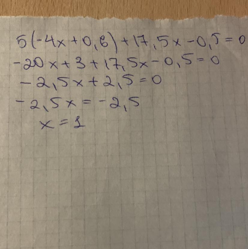 1) 5(-4x + 0,6) + 17,5х -0,5 = -20х + 3 + 17.5х - 0.5 = -2.5х + 2.5
