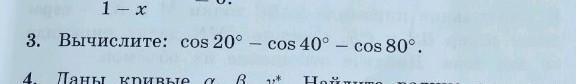 \displaystyle\bf\\Cos20^{0} -Cos40^{0} -Cos80^{0} =\Big(Cos20^{0} -Cos80^{0}\Big) -Cos40^{0} =\\\\\\=2Sin\frac{20^{0}+80^{0}  }{2} \cdot Sin\frac{80^{0}-20^{0}  }{2} -Cos40^{0} =2Sin50^{0} \cdot Sin30^{0} -Cos40^{0} =\\\\\\=2Sin50^{0} \cdot \frac{1}{2} -Cos40^{0}=Sin50^{0}  -Cos40^{0} =\\\\\\=Sin(90^{0} -40^{0} )-Cos40^{0} =Cos40^{0} -Cos40^{0} =0