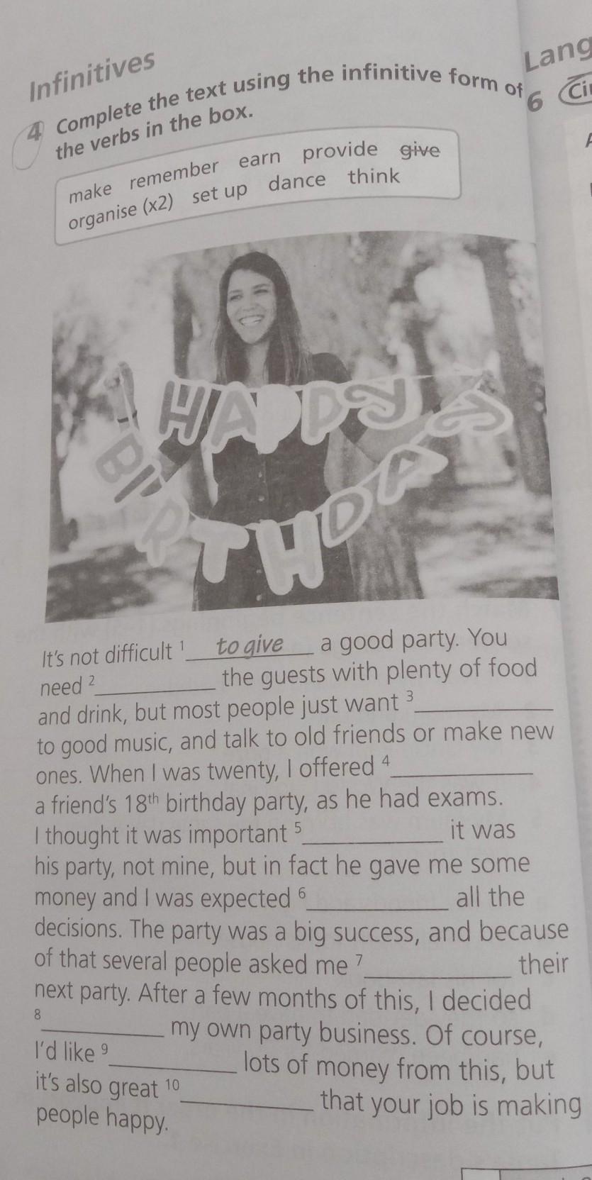 complete the text using the infinitive form of the verbs in the box.