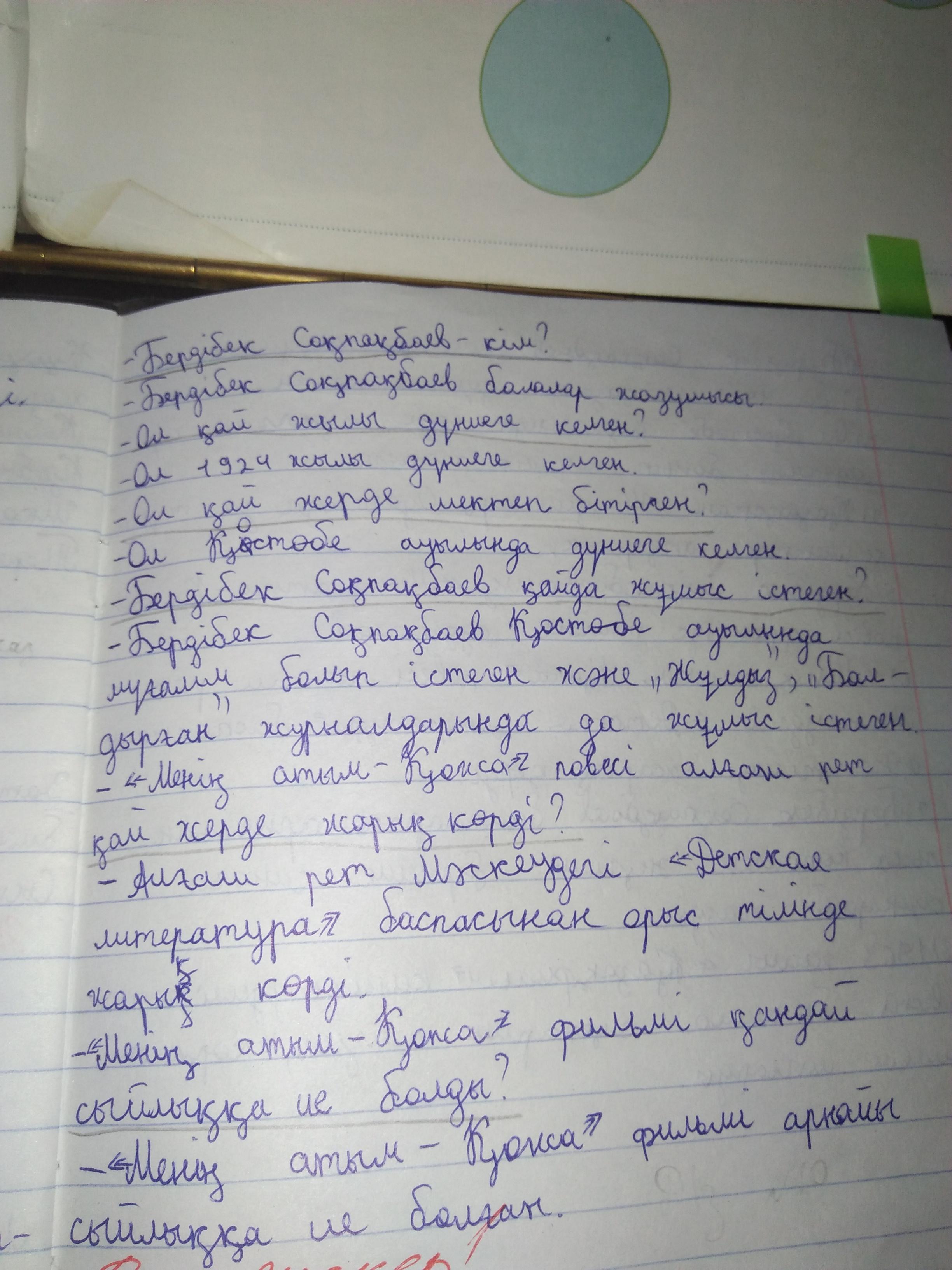 МӘТІНМЕН ЖҰМЫС ТЫҢДАЛЫМ окылым тапсырма Мәтінді тыңда. Түсініп оқы. Белгілі балалар жазушысы - Бердібек Соқпақбаев 1924 жылы 13 қазанда Алматы облысы Нарынқол ауданы (қазіргі Райымбек ауданы) Костобе ауылында дүниеге келген. Осы жерде мектеп бітірген. Ол 14-15 жасынан бастап елең жазған. 1949 жылы Абай атындағы Қазақ педагогикалық ИНСТИТУТЫН бiрiп, туған ауылында мұғалім болып жұмыс істе- ген. Ол «Жұлдыз». > журналында жарияланды. Жазушының «Бакыт жолы», «Алыстағы ауылда>>, >, >, >, > және т.б. шығармалары бар. Бердібек Сокпакбаев - балалардың сүйікті жазушысы Бердібек Соқпақбаевтың «Менің атым - Қожа» повесі алғаш рет Мәскеудегі «Детская литература» баспасынан орыс тілінде жарық көрді. Кейiн француз тіліне аударылды. «Менің атым - Қожа» повесі 30 тілге аударылып, дүниежузiне тара- ды 1963 жылы «Қазақфильм» киностудиясы осы повесть бойынша сценарий жа- зып, көркем фильм шығарды. Фильмнің режиссері - Абдолла Карсакбаев. «Менің Кожа» фильмі Францияның Канн каласында өткен халықаралык кинофе- стивальда арнайы сыйлыкка ие болды. «Менің атым - Қожа» фильмін үлкендер де, балалар да кызыгып көреді. Бул fan